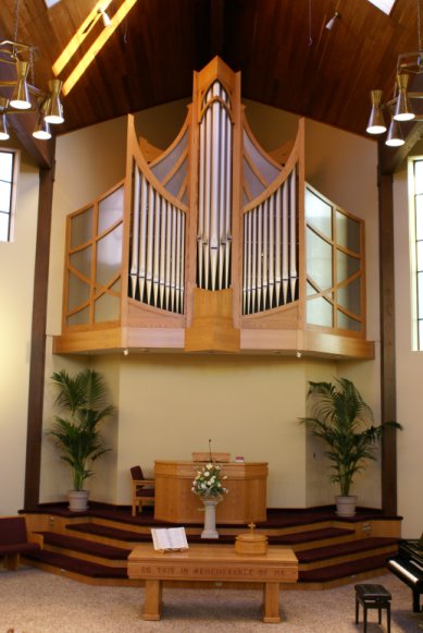 The church in Langley was completed in 1982 and immediately a 2 manual, 22 stop pipe organ was installed by Hugo Spilker. This instrument was assembled with used organ parts from several other old pipe organs.